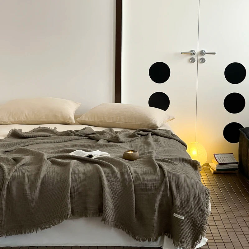 Crinkle Cotton Tassel Throw Blanket